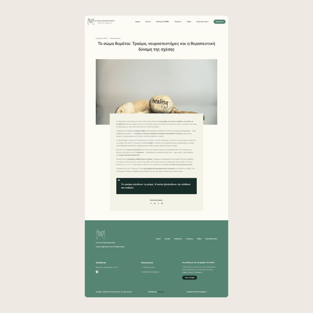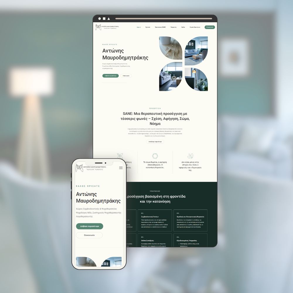 We present the new website of Antonis Mavrodimitrakis, designed to bring the sense of safety and connection from his therapeutic practice into the digital space. The web design draws inspiration from the SANE therapeutic approach, a synthesis of four scientific perspectives, creating a space that meaningfully supports adolescents, adults, and families, both in person and online, across Greece and abroad.